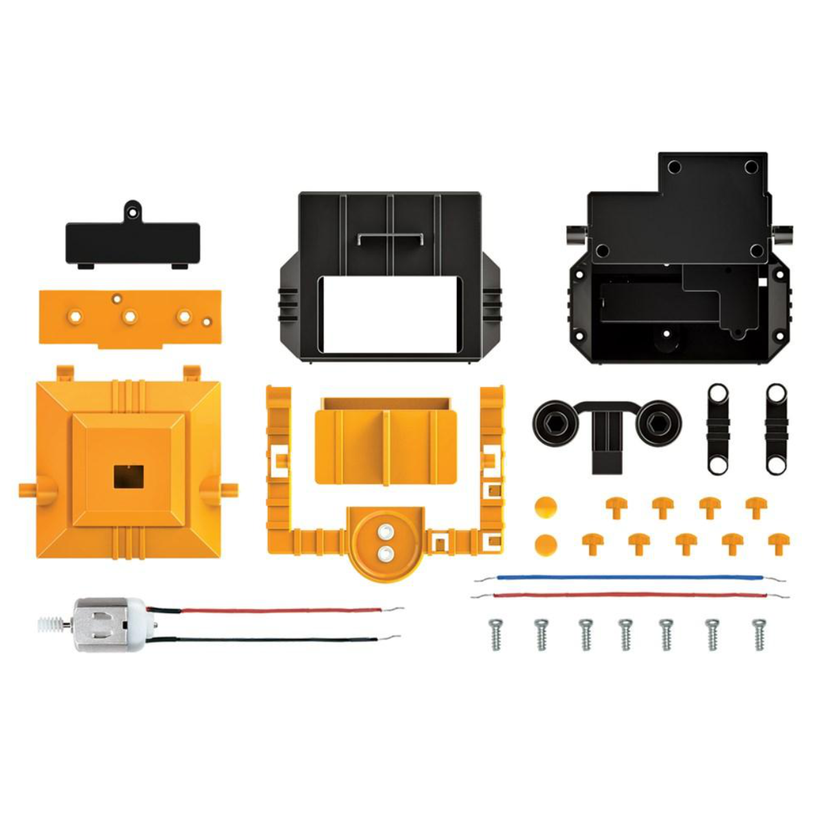Inhalt: 1 Set Kunststoffteile, Motor, Drähte, 10 Schrauben, Anschlusskappen, Zahnräder und ausführliche Anleitung