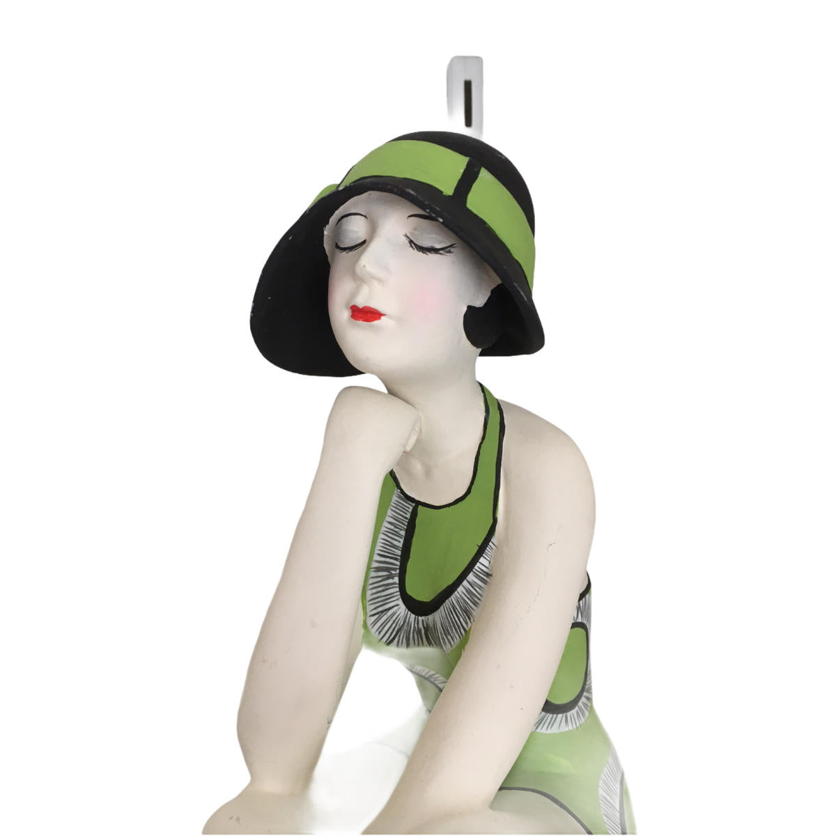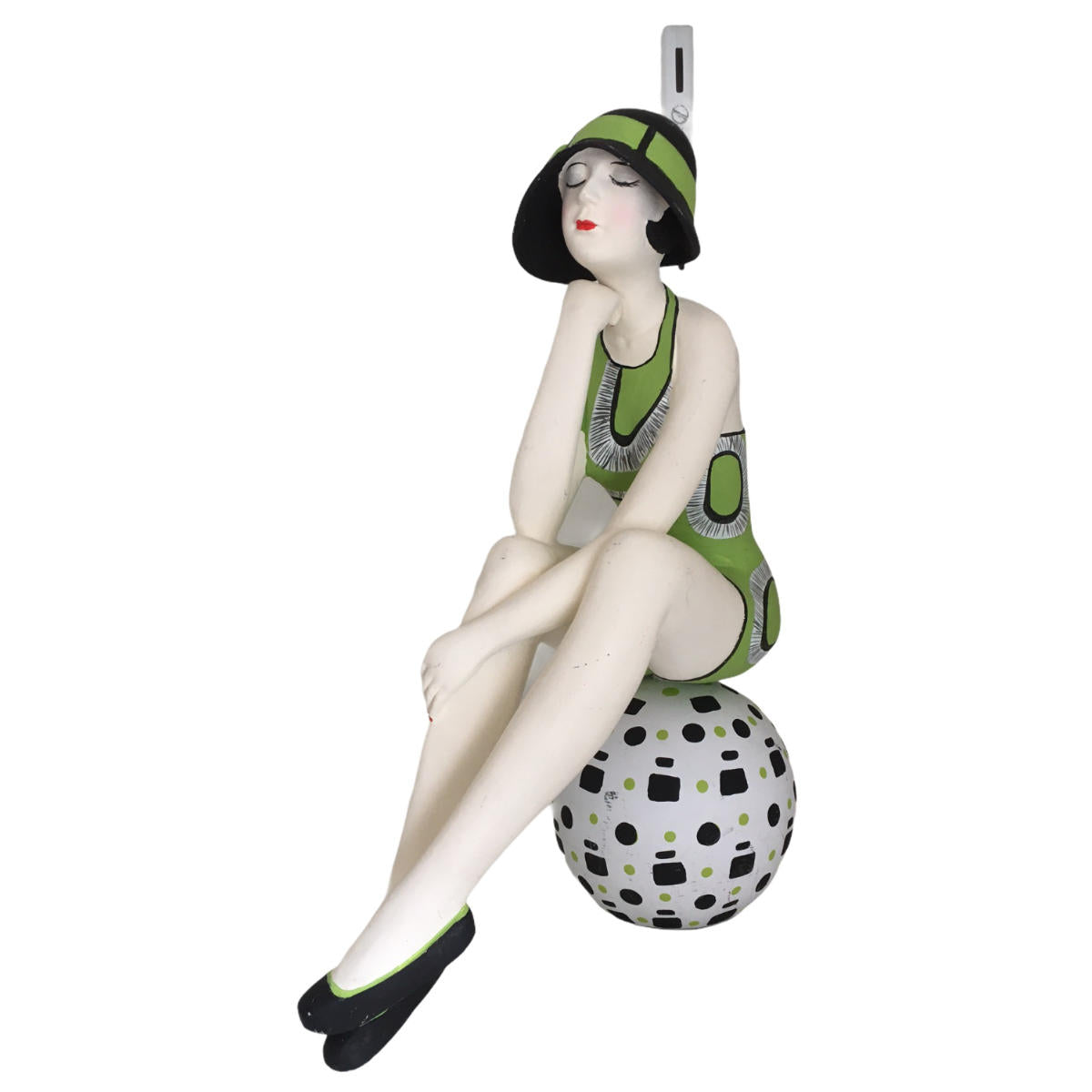 Badenixe auf einem Ball sitzend, gross - trägt einen hellgrünen Badeanzug