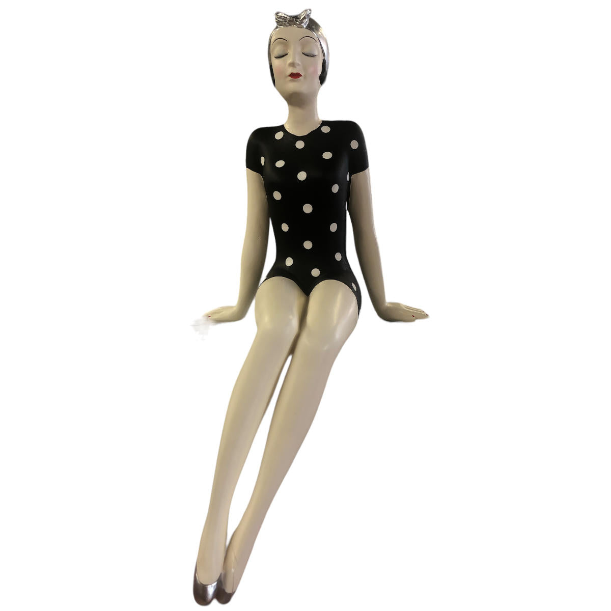 Badenixe gross, Vintage Badeschönheit im schwarzen Badeanzug mit weissen Punkten
