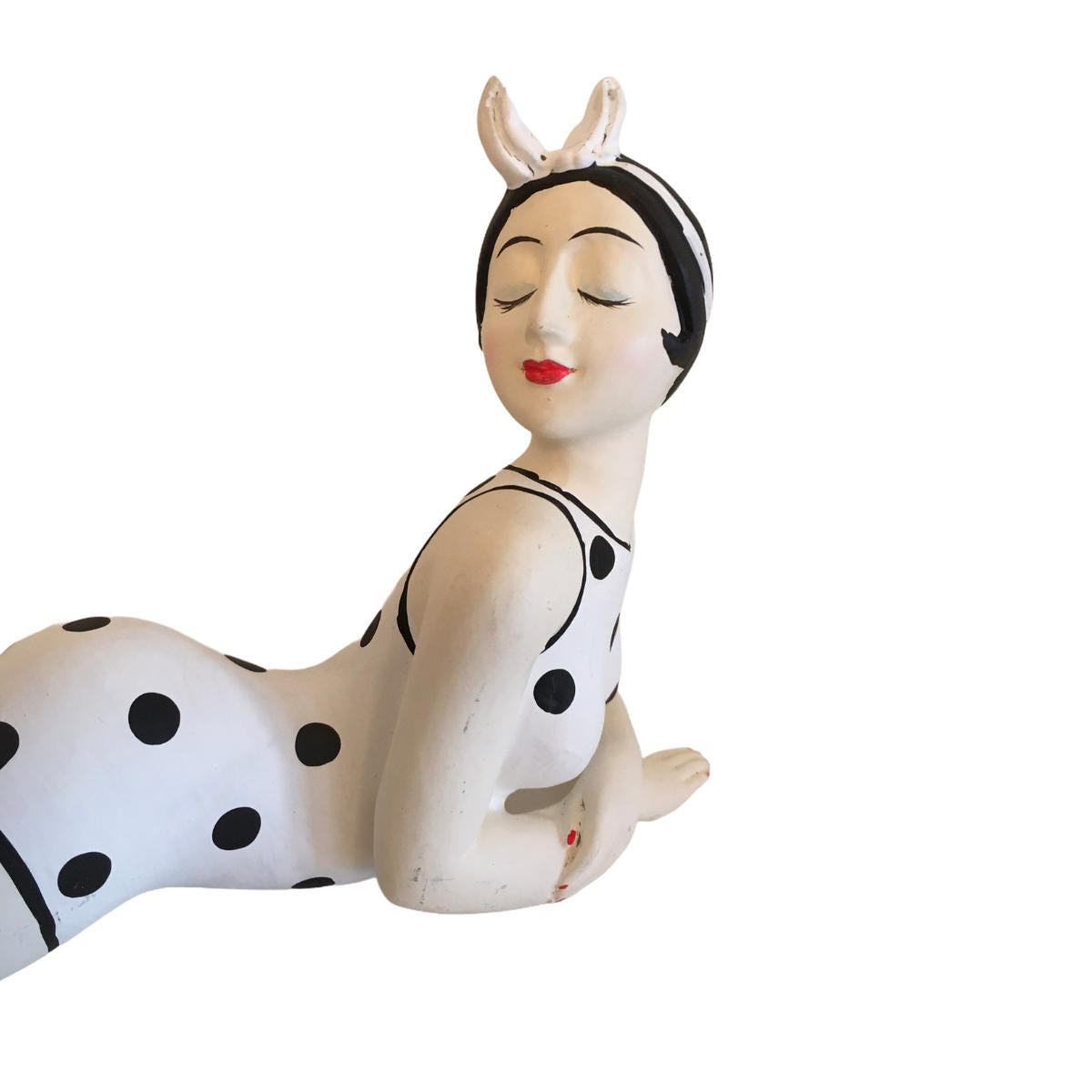 Badenixe gross, Vintage Schönheit mit weissem Badeanzug gepunktet