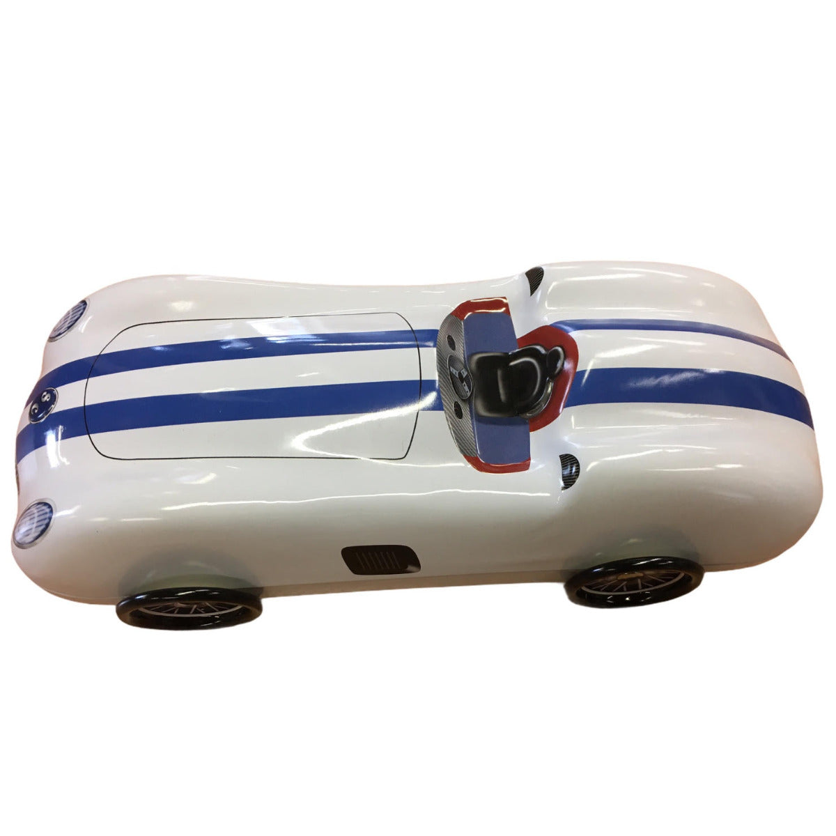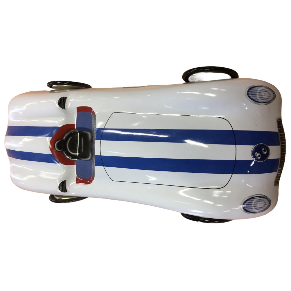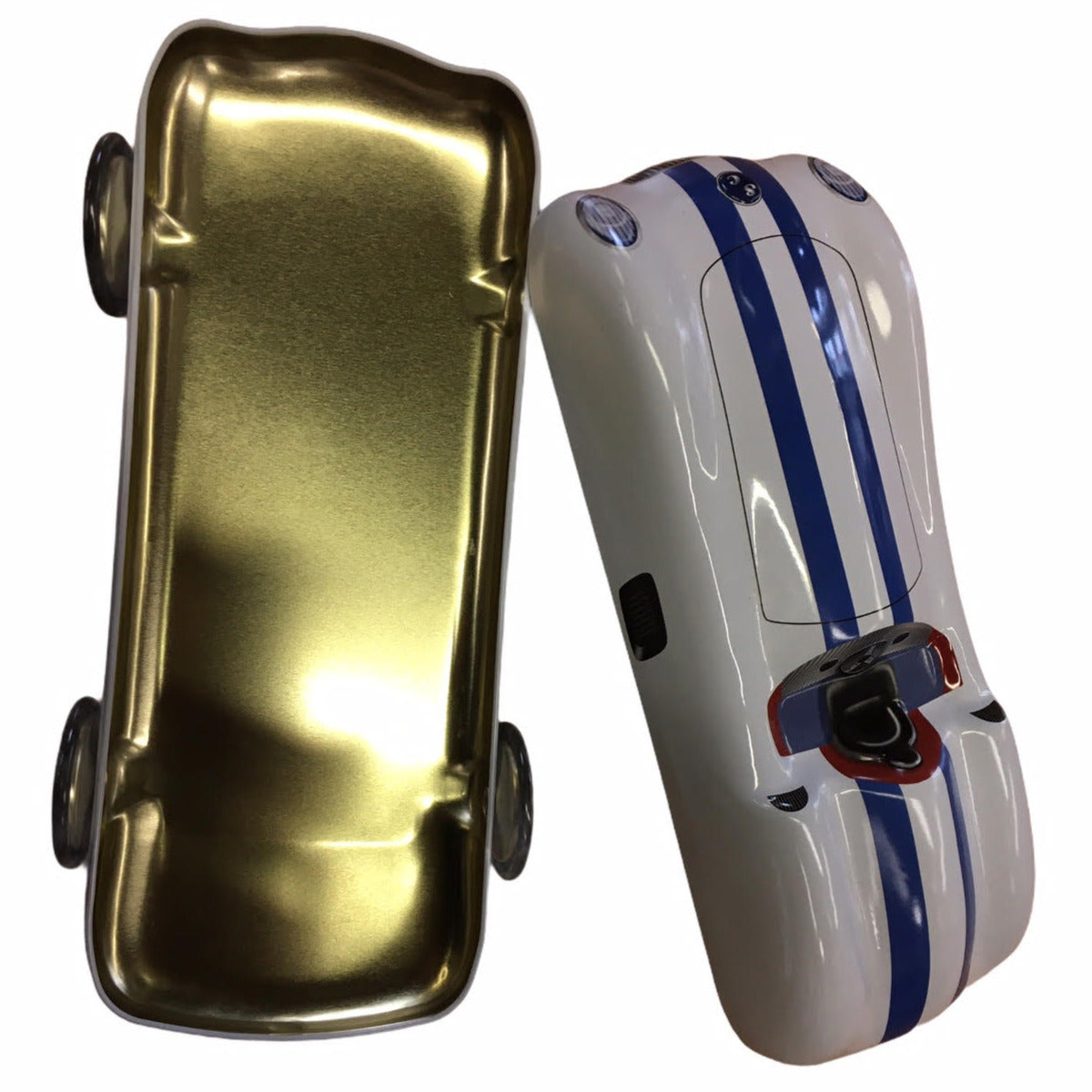 Blechdose - Oldtimer Rennwagen weiss mit blauen Streifen