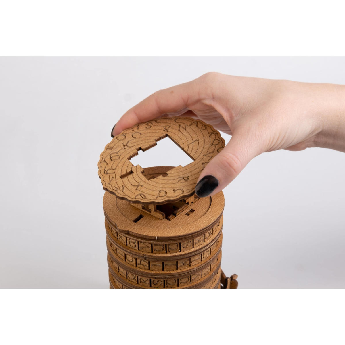 Stelle deinen persönlichen Code ein, lege dein Geschenk in die Kryptex und verschliesse sie. Schreibe deinen Freunden einen Hinweis oder ein Rätsel, mit dem der Code gefunden werden kann.