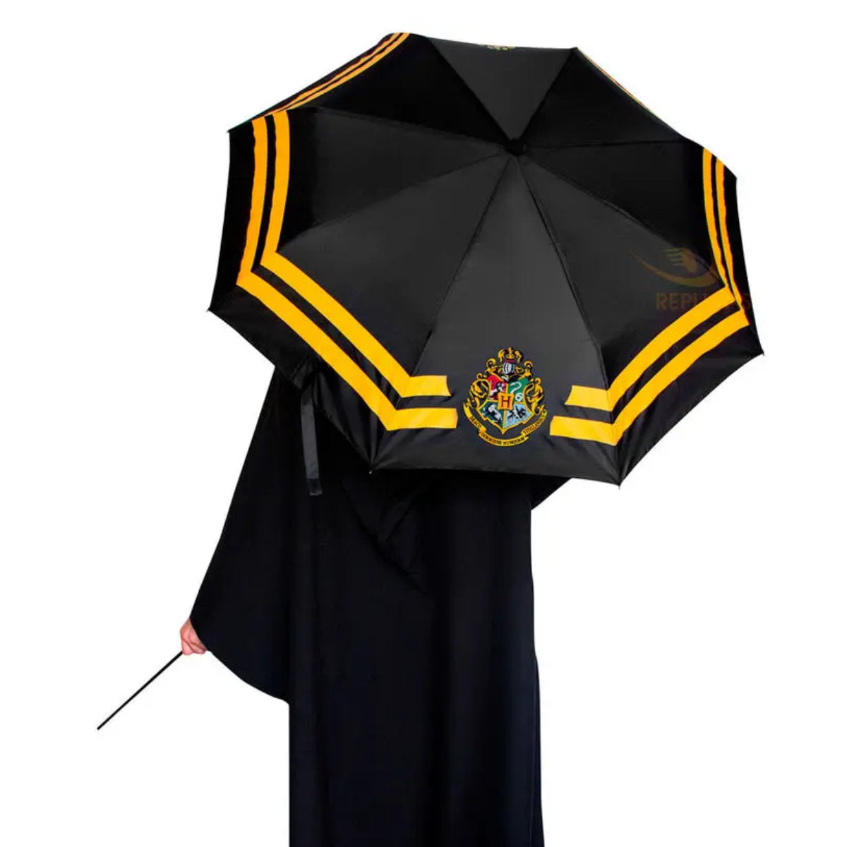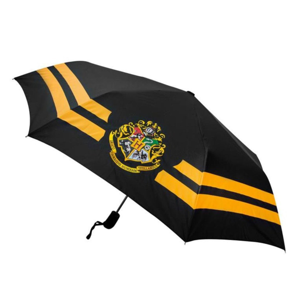 Dieser Regenschirm öffnet mit einem automatischen Knopf und kann in seiner wasserdichten Schutzhülle verstaut werden. Zeigen Sie Ihren Hausstolz mit diesem Hogwarts-Regenschirm!