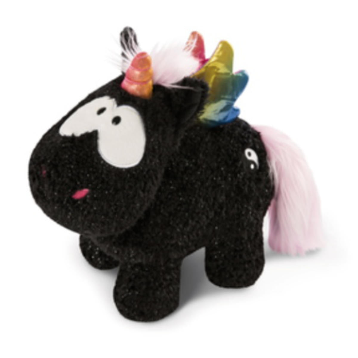 Das schwarze Kuscheltier Einhorn Yin ist ein super Kuschelfreund mit rosaroter Mähne und regenbogenfarbenen Flügeln. Das Yin-Yang Zeichen prangt auf seinem Hinterteil und verleiht ihm einen tollen unverwechselbaren Look!