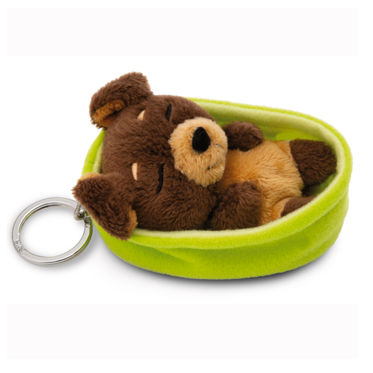 Wuff! Der Sleeping Pets Hund - dein treuer Freund und Begleiter! Als 8cm grosser Schlüsselanhänger aus flauschig weichem NICI Plüsch ist das dunkelbraune Hündchen mit einem Schnäuzchen und einem Bäuchlein in einem warmen Hellbraun, einem extrem niedlichen Gesichtchen und aufwändig gestickten Schlafaugen ein zauberhaftes Geschenk für Hundeliebhaber und Sleeping Pets Fans. Der Welpe macht es sich in seinem grünen Plüschkörbchen so richtig gemütlich und ist dank des stabilen Schlüsselrings aus Metall am Schlüsselbund, Rucksack, Schulranzen oder Handtasche ein echter Hingucker. Der Sleeping Pets Schlüsselanhänger ist Teil der NICI GREEN Produktwelt. Für NICI GREEN Produkte verwenden wir fast ausschliesslich Plüsch- und Füllstoffe, die aus recycelten Materialien bestehen. Hierfür werden vor allem recycelte PET-Flaschen zu RPET verarbeitet.