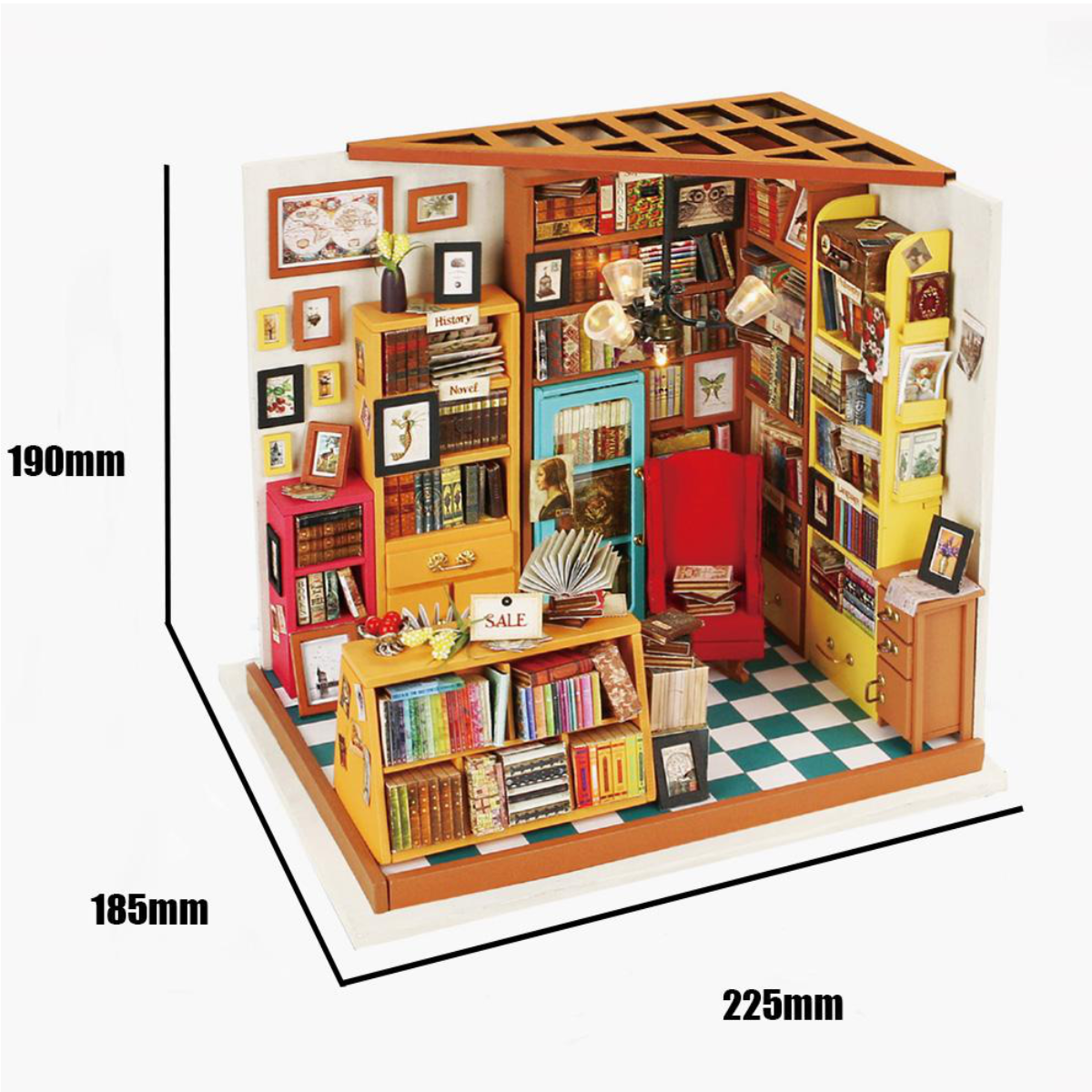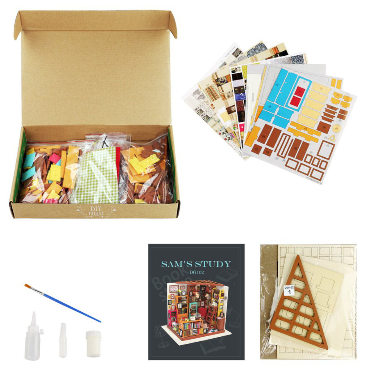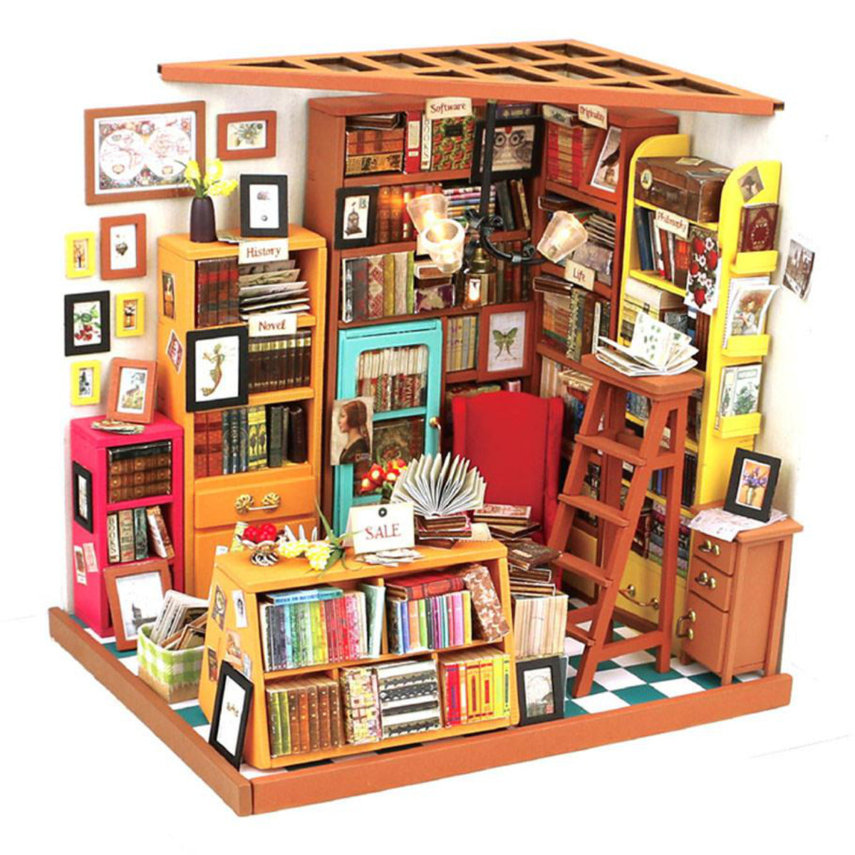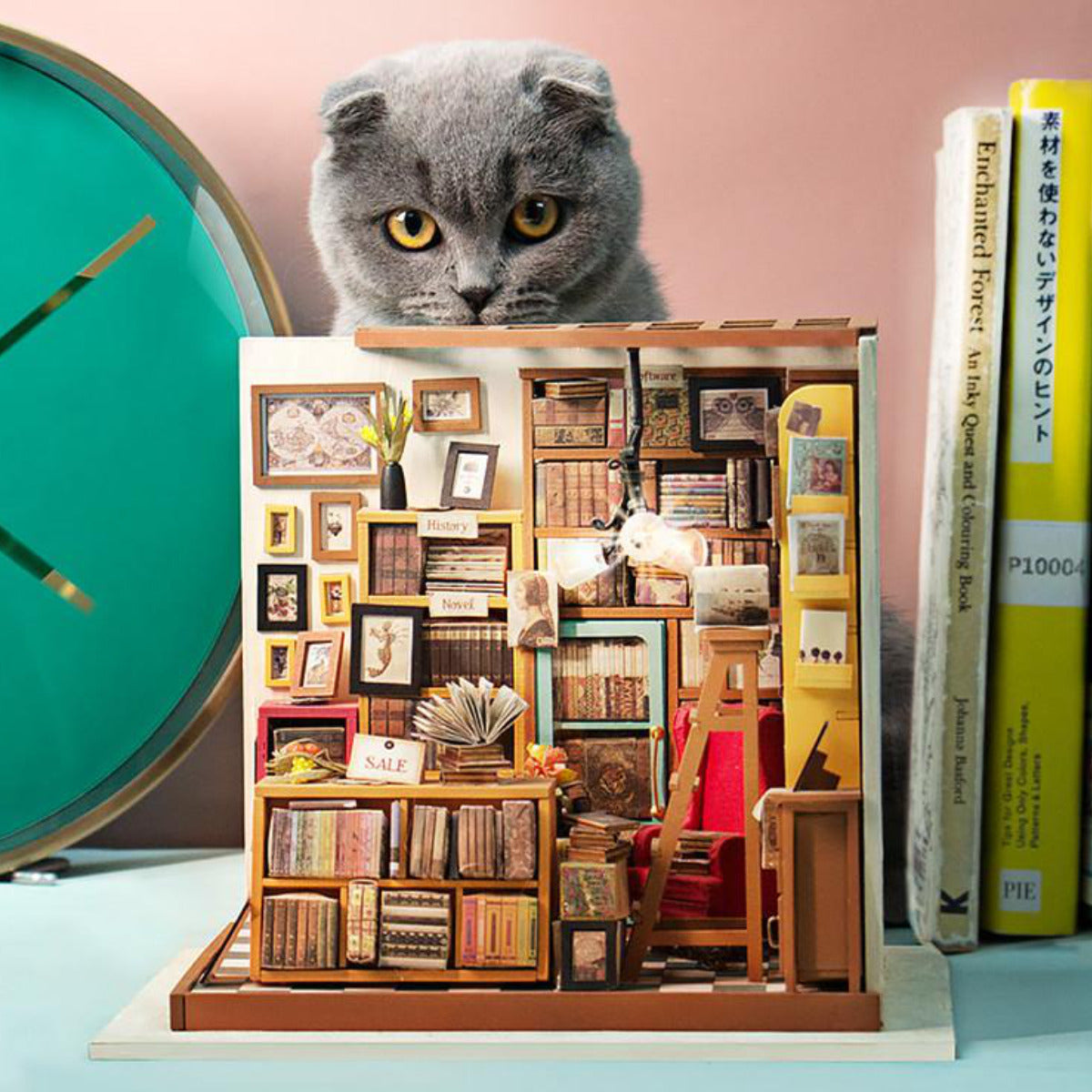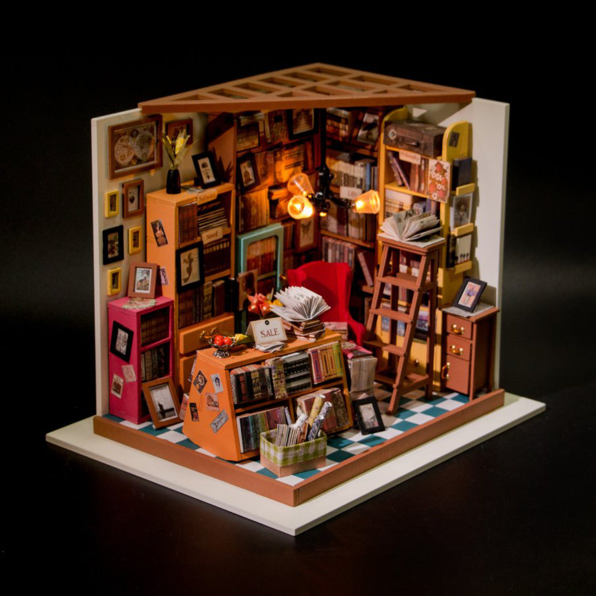 - mit vielen Miniaturen, Fotos und Rahmen, Bücherregalen und Büchern, Stuhl, Leiter usw.