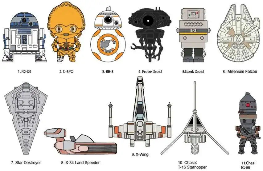 Die Star Wars Schlüsselanhänger kommen als detailreiche 3D-Schaumstofffiguren im Blindpack. Sammle deine Lieblingscharaktere aus dem Star Wars Universum und halte Ausschau nach den besonderen, seltenen Chase-Figuren. Jede Figur ist ca. 5 cm groß und eignet sich perfekt zum Sammeln, Verschenken oder als stylisches Accessoire für Schlüssel, Rucksack oder Tasche.