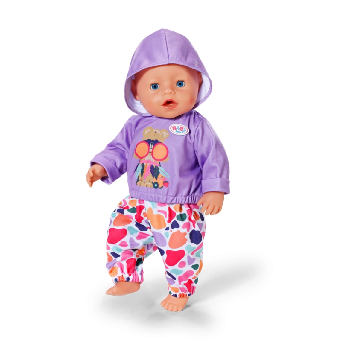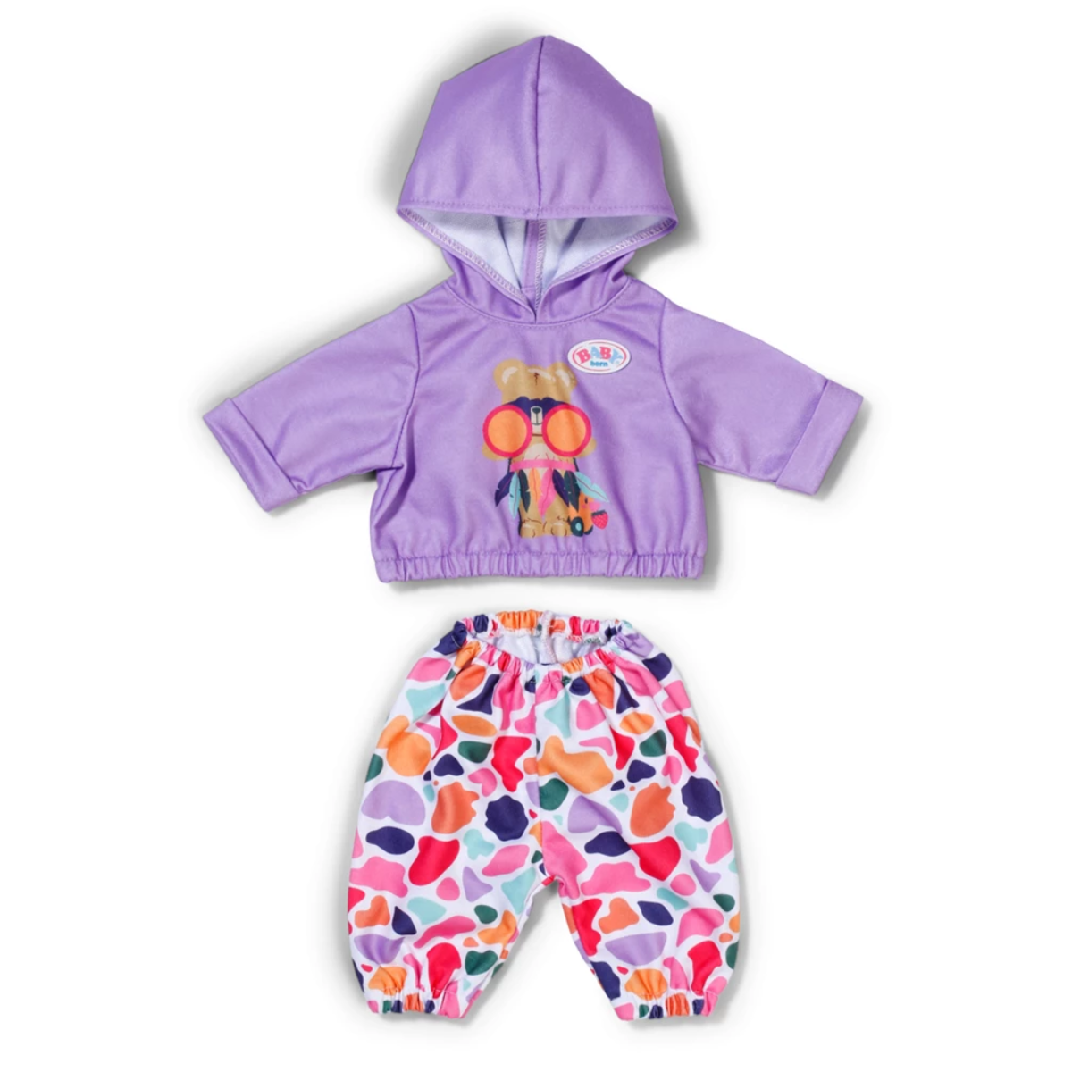 BABY born Hoodie Outfit 43cm. Ein sportliches Hoodie Outfit passend für alle BABY born Markenspielpuppen in Größe 43cm. Inklusive coolem Hoodie und einer Hose im modernen Design. Hochwertige Kleidung für die BABY born Markenspielpuppe.