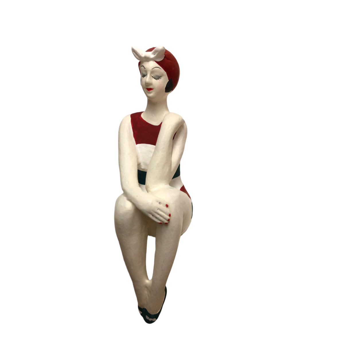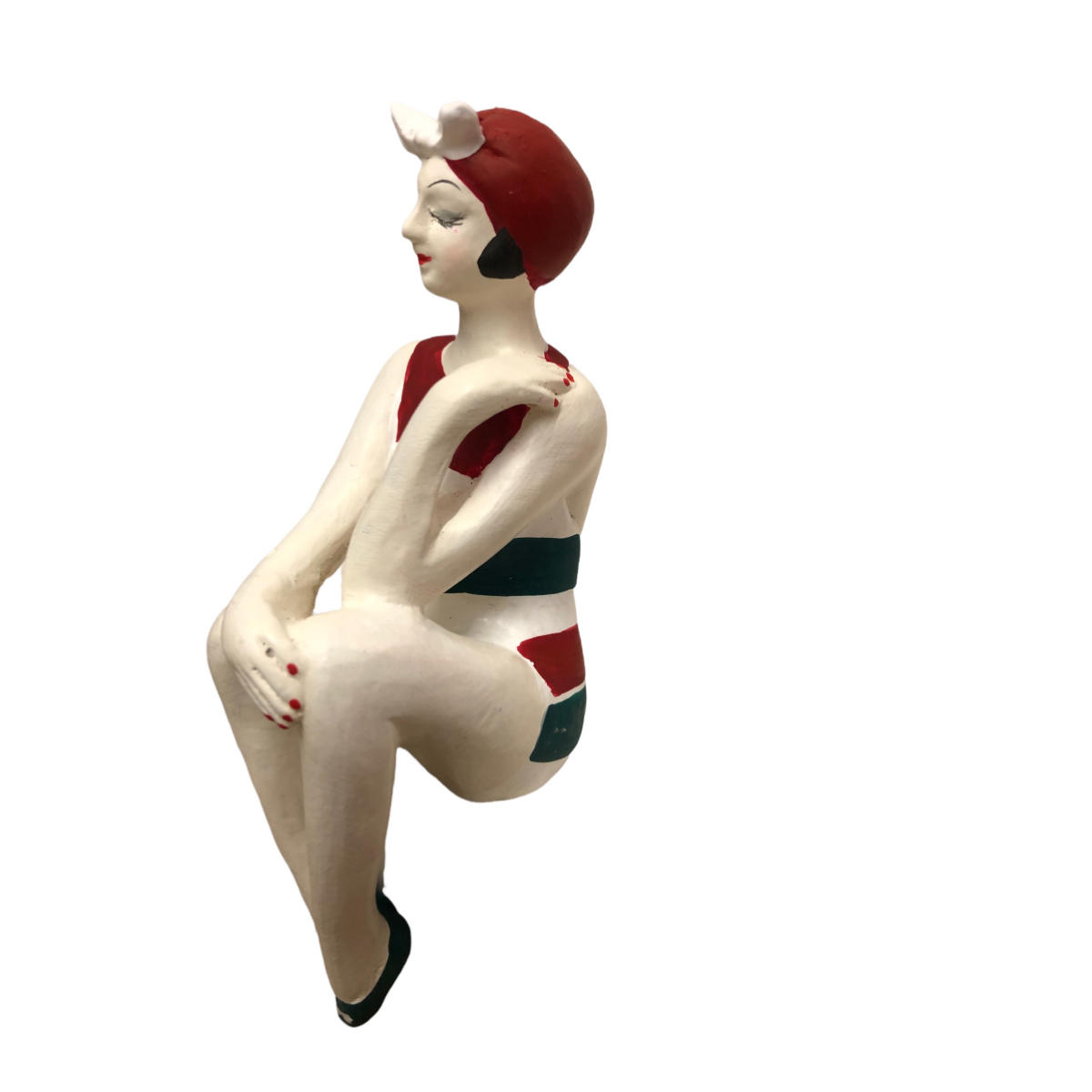 Badenixe mini sitzend, Vintage Schönheit in einem bunten Badeanzug