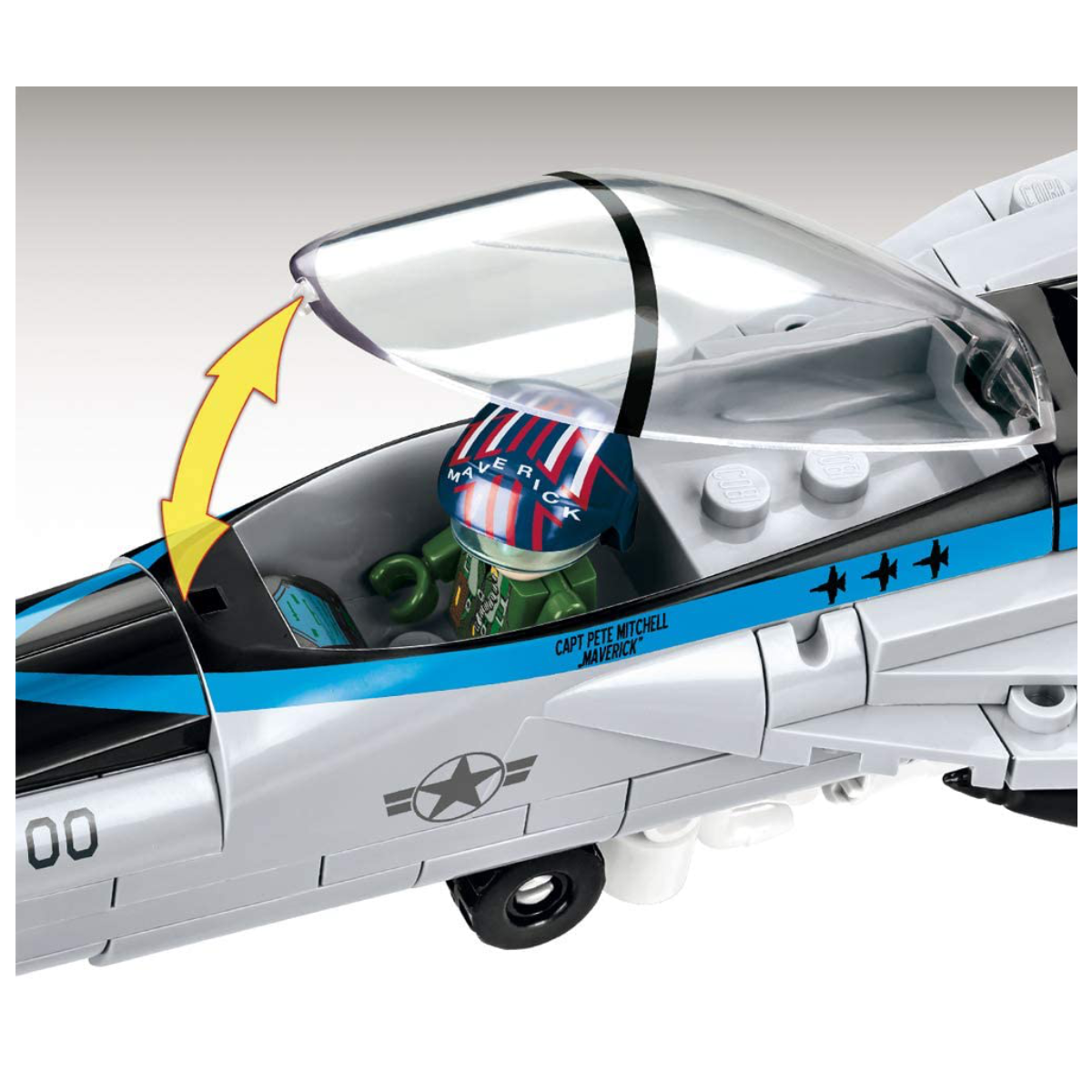 Sie können jetzt Ihre eigene Super Hornet im Modellmassstab 1:48 bauen. Das Modell wurde originalgetreu aus 580 COBI-Bausteinen erstellt. Im Set finden Sie hochwertige Drucke und Aufkleber, die das Original des Flugzeugs genau wiedergeben. Das Modell ist mit einem beweglichen Kabinendach und rotierenden Rädern ausgestattet. Unter den Flügeln befindet sich ein grosses Waffenarsenal. Im Cockpit können Sie den speziellen Piloten setzen. Es enthält auch einen eleganten Displayständer und eine Plakette mit dem Namen des Flugzeugs und des Filmlogos. Dieses exklusive lizenzierte Kit ist sicherlich eine grossartige Geschenkidee für Bauherren jeden Alters, die Filmfans sind, sich sowohl für Luftfahrt- als auch für Militärfilme begeistern. Es sieht perfekt aus in einem eleganten Büro oder im Zimmer eines Teenagers.