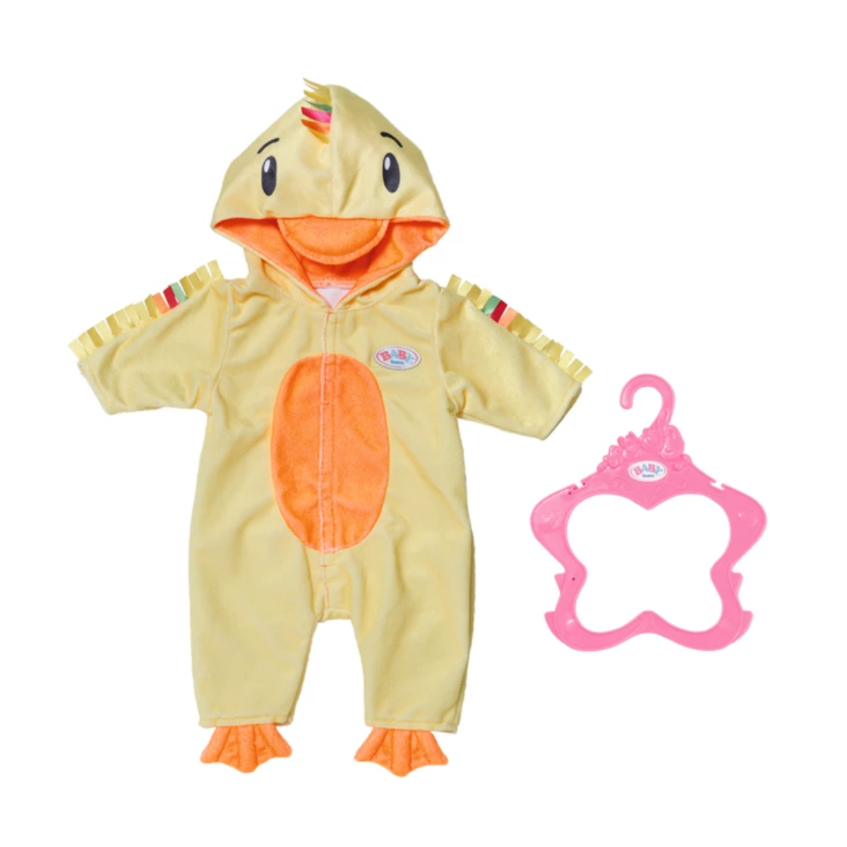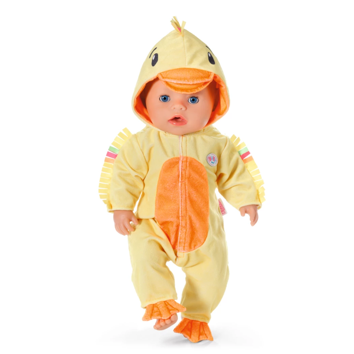BABY born im Ente Berta Onesie zum Chillen Zuhause oder zum Kuscheln im Bettchen nach dem Baden. Hochwertige Kleidung für die BABY born Markenspielpuppe.