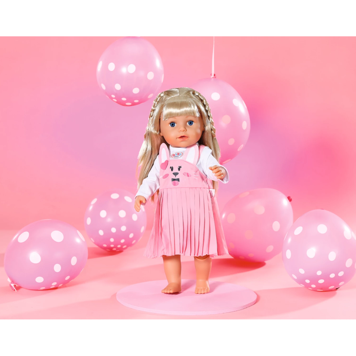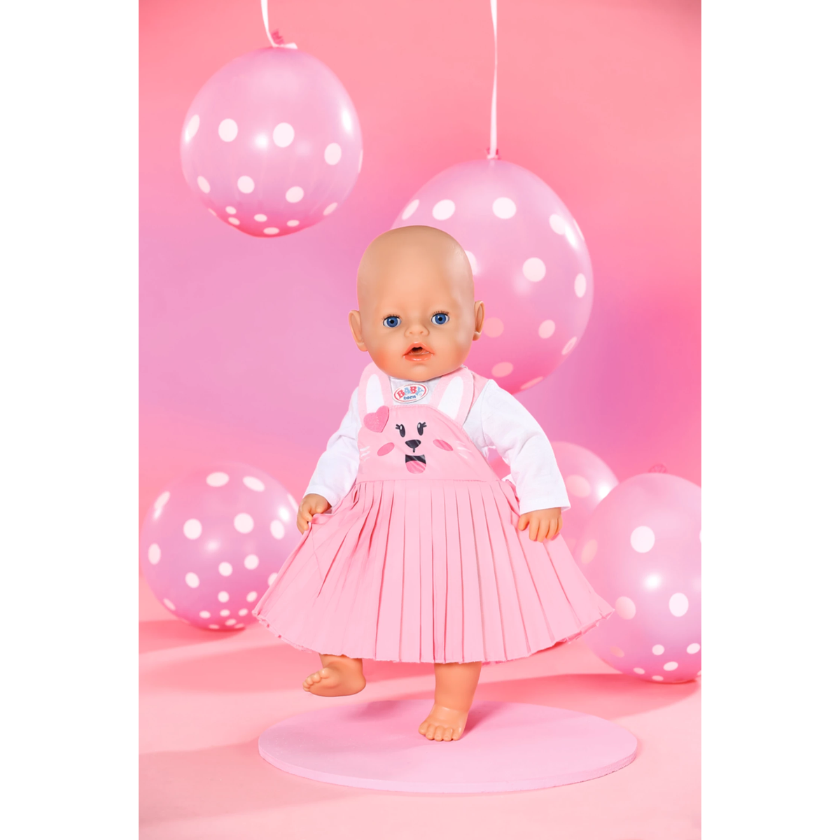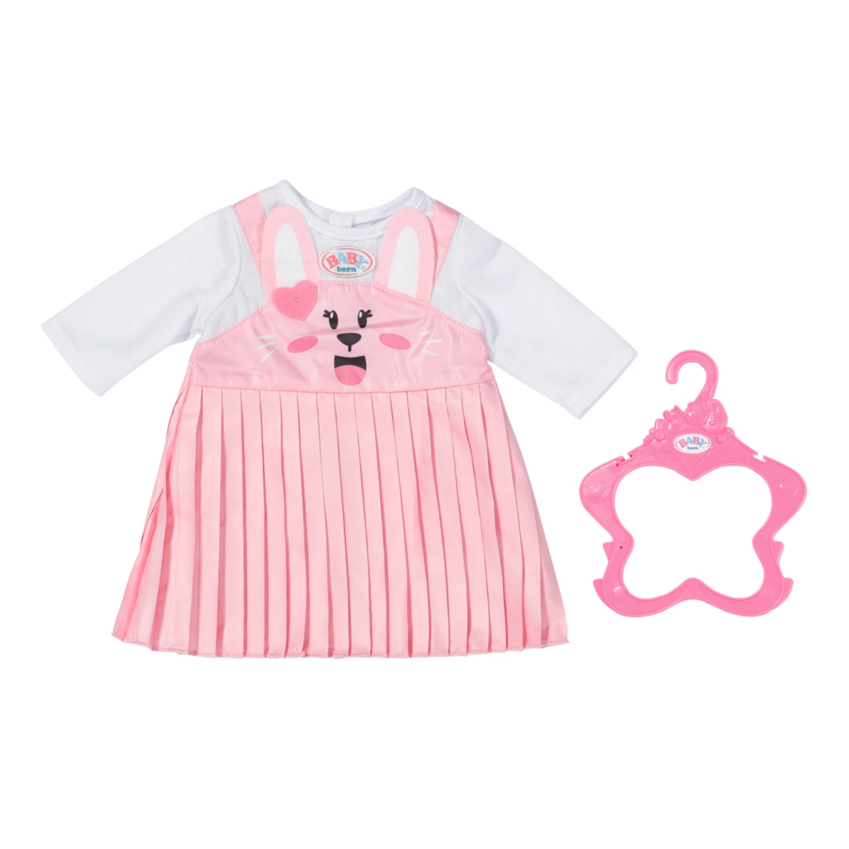 Hasenstarkes Kleid mit Faltenrock. Inklusiv Kleiderbügel. Hochwertige Kleidung für die BABY born Markenspielpuppe.
